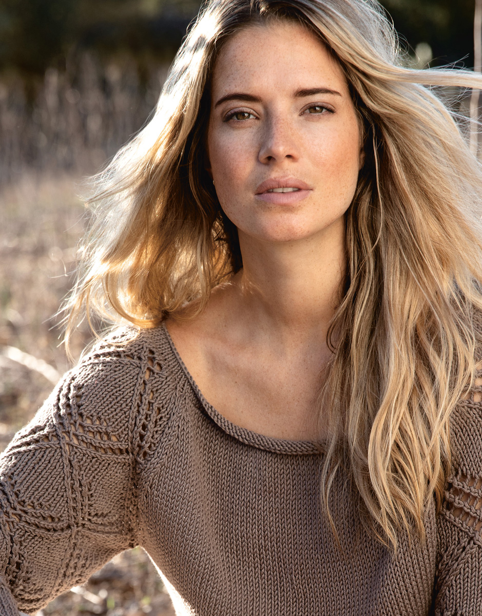 Das Dreamteam für zeitlosen Sommerstrick? Rollränder, Lochmuster und ein dezenter Taupe-Ton.
