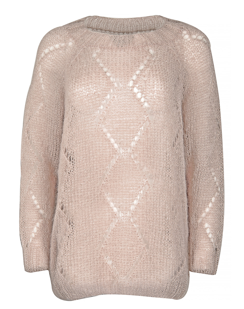 Lana Grossa-Qualität „Silkhair Lusso“ (78 % Mohair (Superkid), 14 % Seide, 4 % Polyester, 4 % Polyamid, Lauflänge 210 m/25 g): ca. 100 g Nude (Fb. 903) und Lana Grossa-Qualität „Silkhair“ (70 % Mohair (Superkid), 30 % Seide, Lauflänge 210 m/25 g): ca. 100 g Hellbeige (Fb. 18); Stricknadeln Nr. 5,5 und 9, 1 Rundstricknadel Nr. 5,5, 50 cm lang.