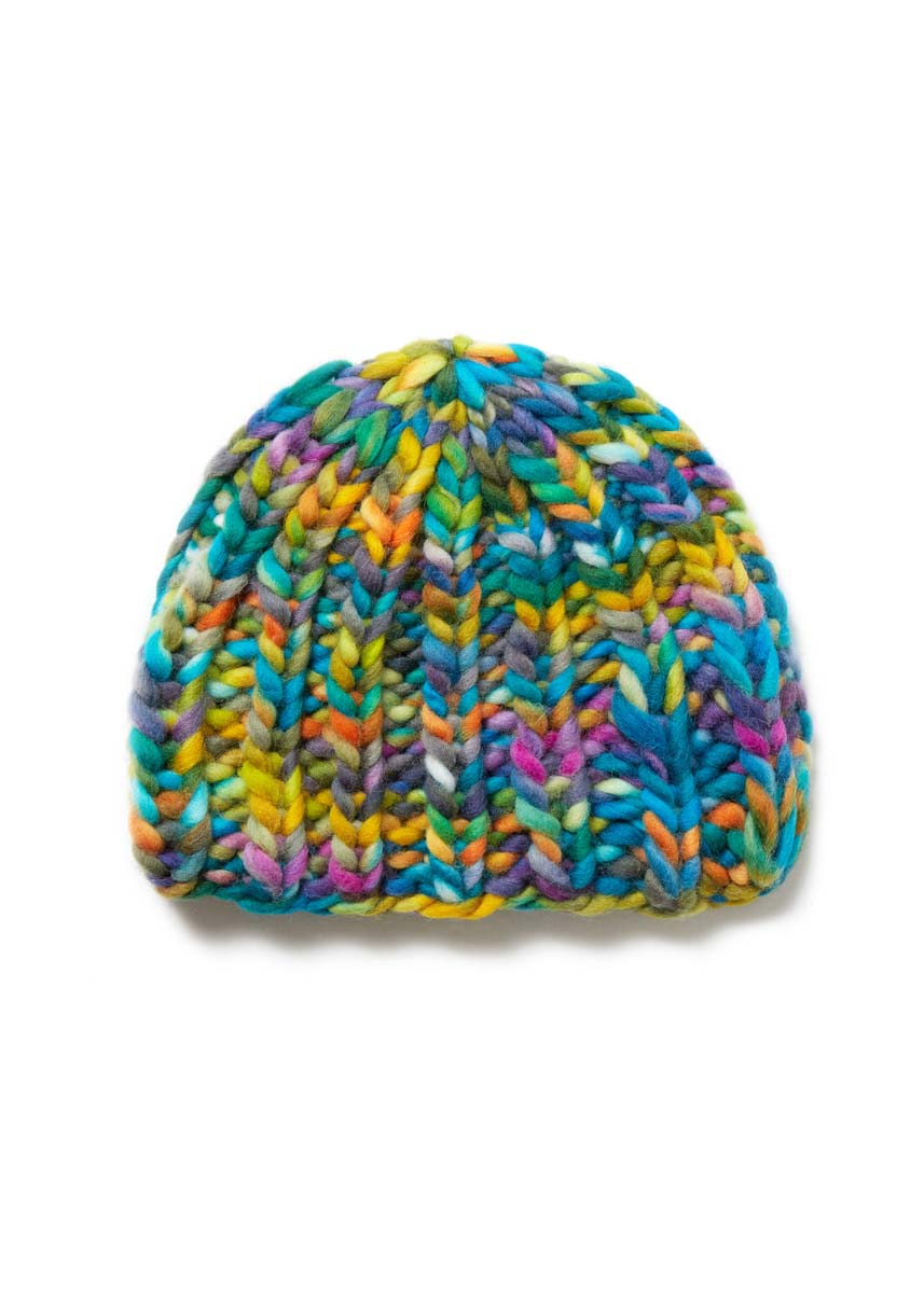Confetti für alle! Der V-Pullunder, glatt rechts gestrickt, nur die Mitte in markantem Halbpatent, macht Laune. Funky Colors und dazu ein weiches, fix zu verstrickendes XXL-Garn, das es auch in moderateren Farbstellungen gibt. Für die Rippenmütze gilt: dito! Nur, dass Sie hier mit einem Nadelspiel an den Start gehen. Funktioniert kinderleicht und macht nahtlos glücklich.
