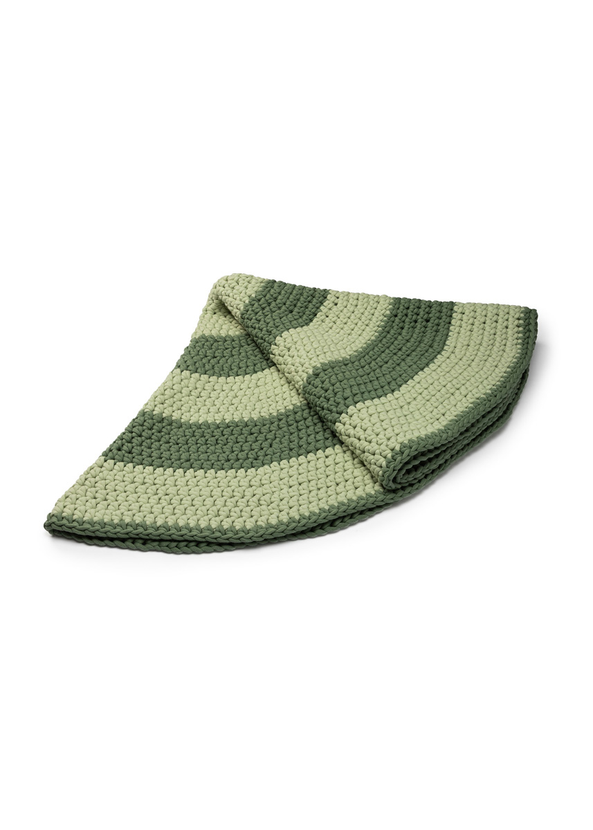 Lana Grossa-Qualität „The Tube” (60 % Baumwolle, 40 % Nylon, LL = ca. 114 m/200 g): ca. 800 g Weißgrün (Fb. 31) und ca. 600 g Resedagrün (Fb. 11); 1 Wollhäkelnadel Nr. 10.