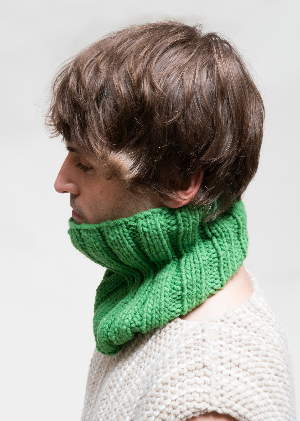 Eine runde Sache. Den Rundschal strickst du in linken und rechten Maschen in Runden. Wenn du ihn mehrfarbig haben möchtest, dann in mehreren Teilen. Er hält schön warm am Hals und wird in Kombination mit dem Rippenpulli »Thickie« ganz einfach zum Rollkragenpulli.