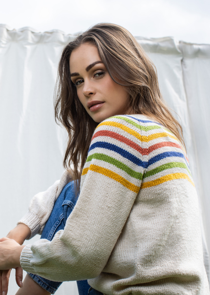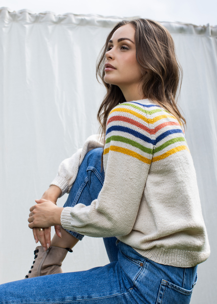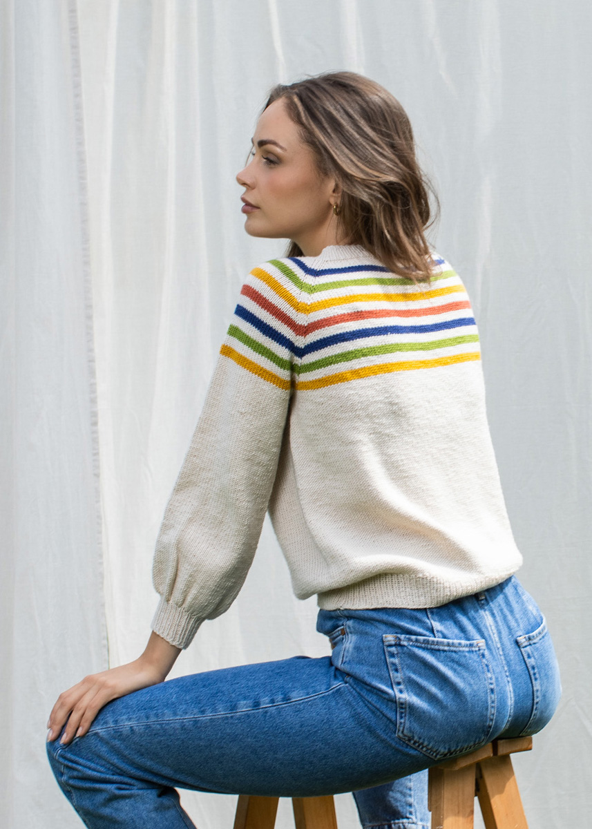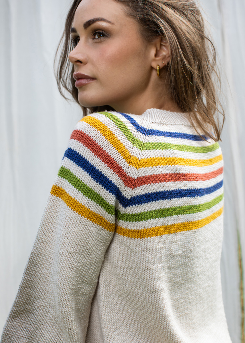 Der Pullover wird nahtlos in einem Stück von oben nach unten gestrickt und hat eine Gesamtlänge von 54 (56 - 58 - 60 - 62 - 64) cm und eine Brustmehrweite von 10 cm bei 80 (88 - 96 - 104 - 116 - 128) cm Brustumfang.