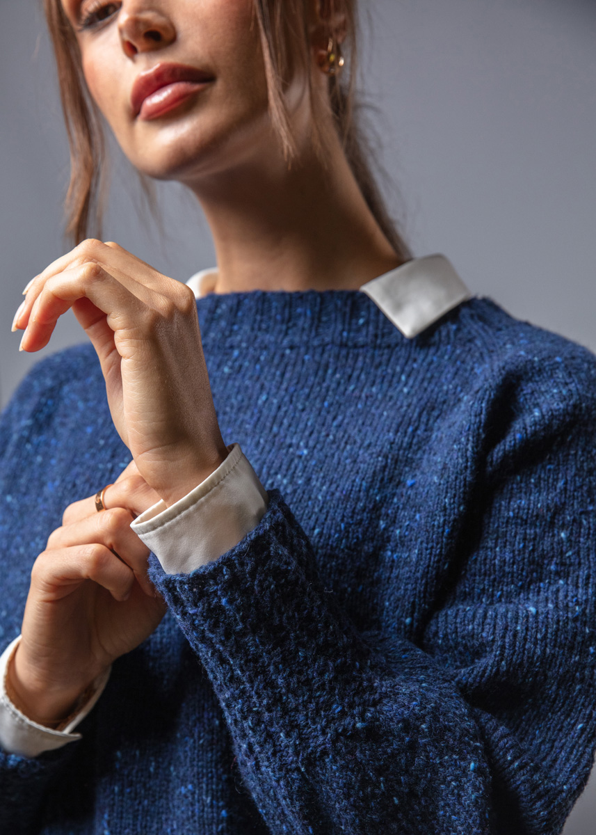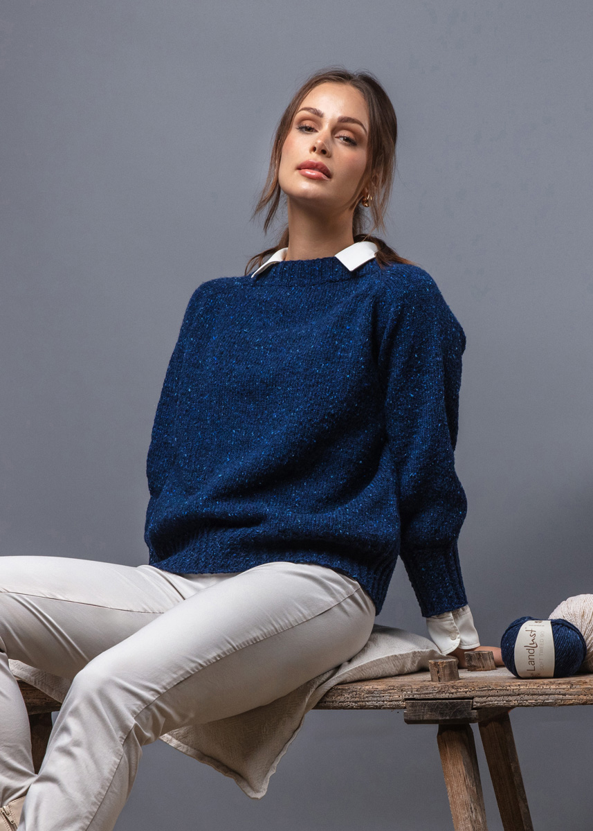 Der Pullover wird nahtlos in einem Stück von oben nach unten gestrickt und hat eine Gesamtlänge von 58 (60 - 61 - 62 - 63 - 64) cm und eine Brustmehrweite von 13 cm bei 80 (88 - 96 - 104 - 116 - 128) cm Brustumfang.