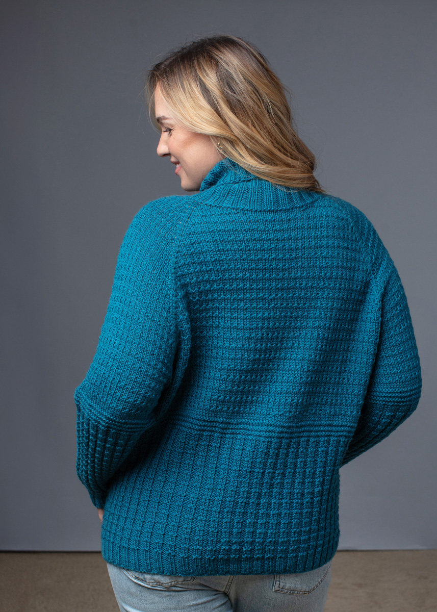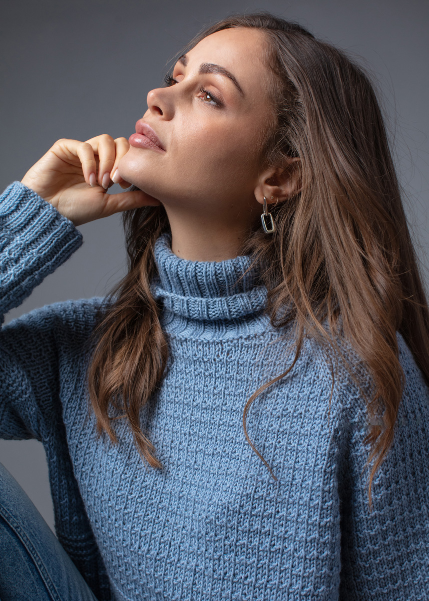 Ein zeitloser Look mit ausdrucksvollem Strukturmuster - dieser Rollkragenpullover wird nahtlos von oben nach unten gearbeitet. Gestrickt aus 100% Merinowolle wärmt er bei Kälte, kühlt bei Hitze und ist super weich sowie pflegeleicht. Geeignet für erfahrene Stricker:innen.