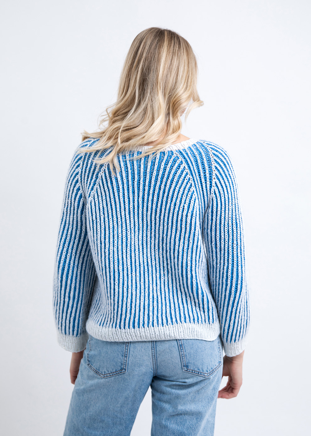Gestrickt aus dem hochwertigen Garn Summer Softness, begeistert Jana durch seine weiche Haptik und einen hohen Tragekomfort. Das zweifarbige Patentmuster sorgt für eine spannende Optik und macht den Pullover wendbar – je nach Styling kannst du die Farbseite ganz einfach wechseln.