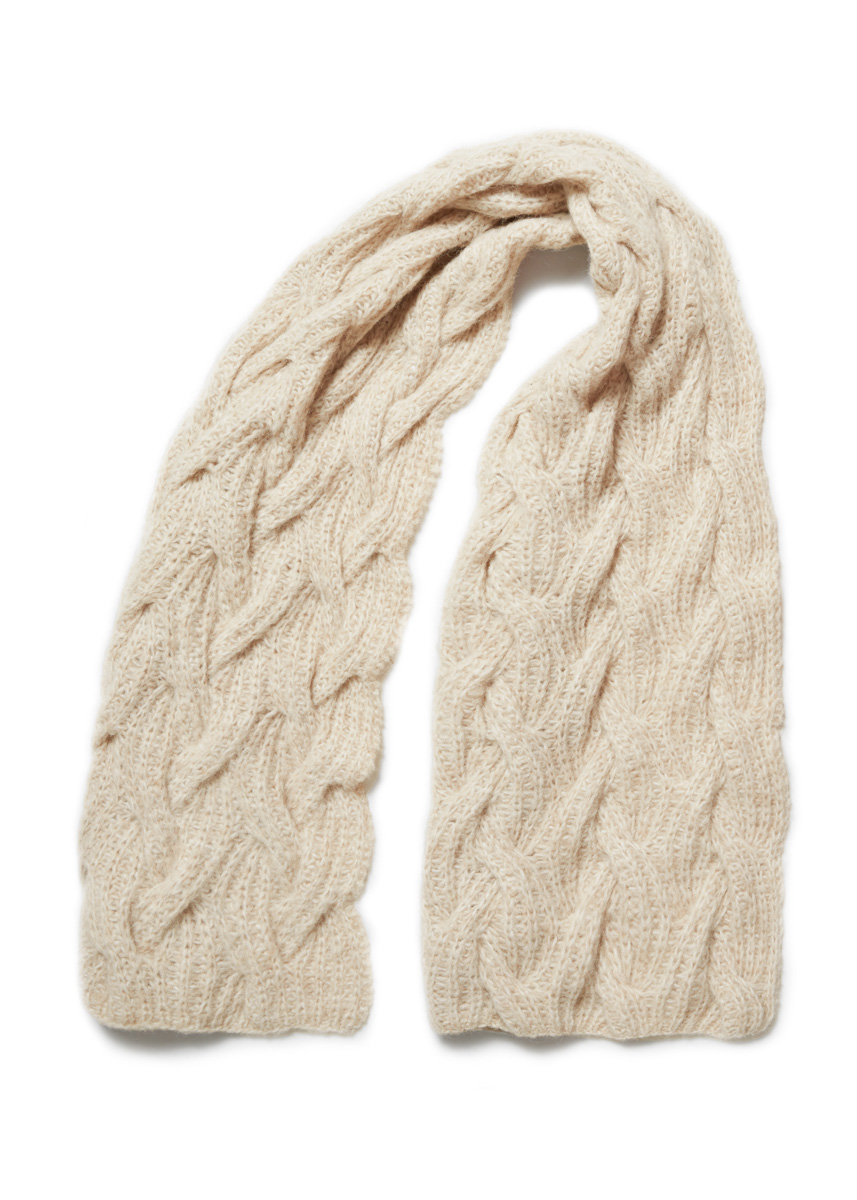 Lana Grossa „Alpaca Air“ (62% (Baby) Alpaka, 27% Polyamid, 11% Schurwolle (Merino Fine), LL = 140 m/50 g): 300 g in Beige (Fb. 2); Stricknadeln Nr. 5, 1 Hilfs- oder Zopfnadel.