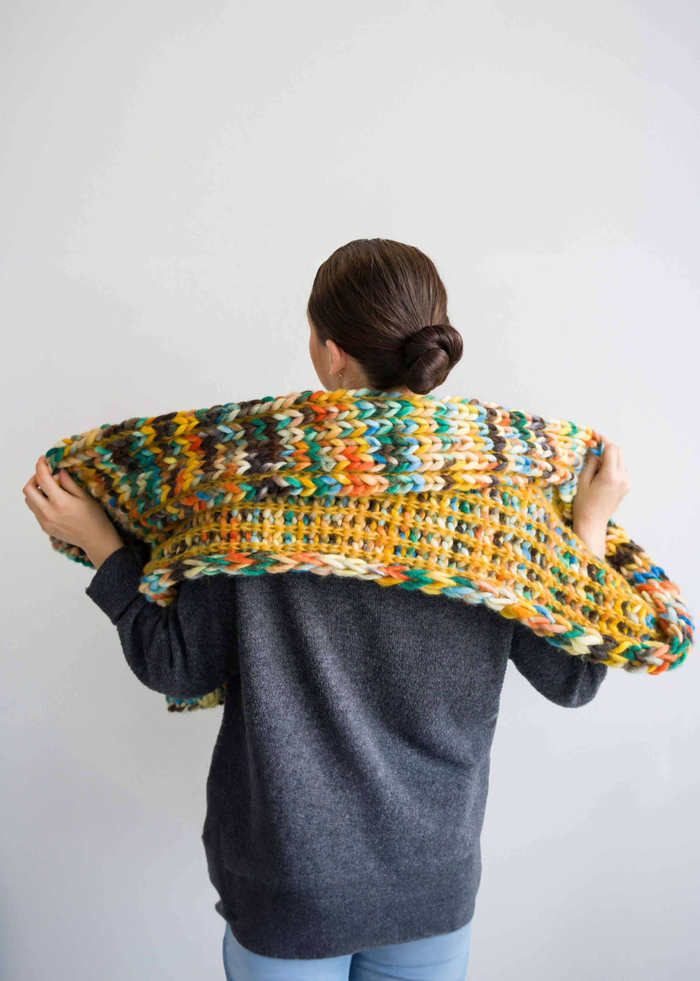 Das Originalmodell wurde aus „Alpaca Air“ (Fb. 15 Curry) und „Confetti“ (Fb. 7) gestrickt.