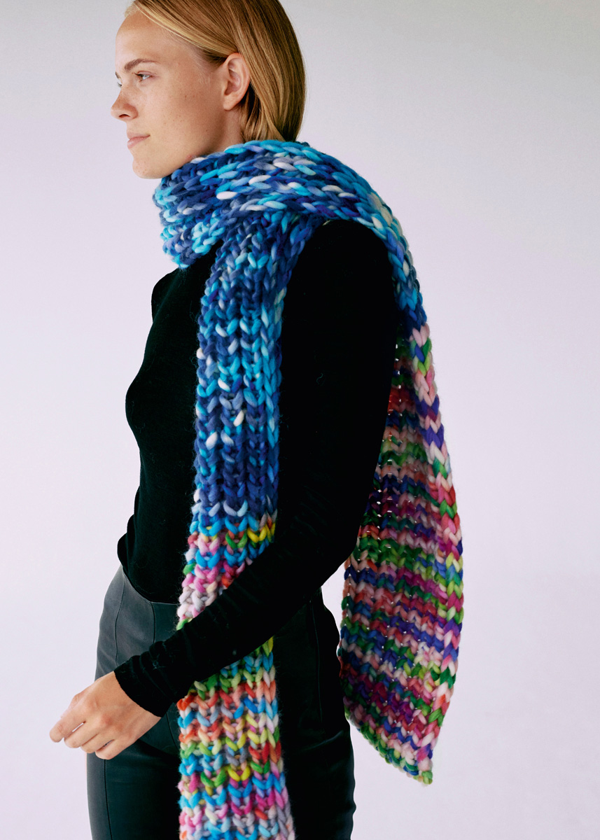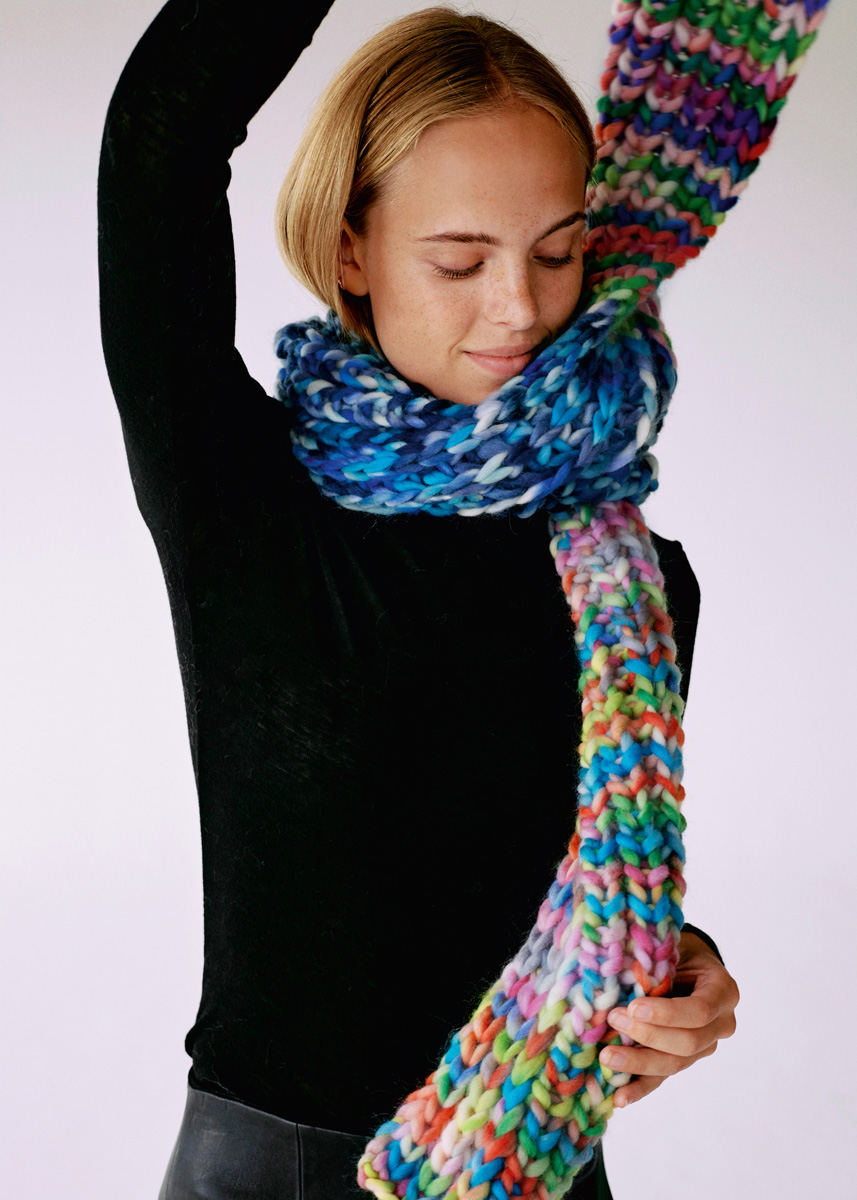 Farbvariante 1: Lana Grossa „Confetti“ (100 % Schurwolle (Merino), Lauflänge 50 m/100 g), 200 g Rohweiß/ Graubraun/Rost/Orange/Marone (Fb 9) = Farbe A, 100 g Rohweiß/Grau/Umbra/Schwarz (Fb 8) = Farbe B, 100 g Rohweiß/Rost/Petrol/Anthrazit/ Orange (Fb 7) = Farbe C; Farbvariante 2: Lana Grossa Confetti (100 % Schurwolle (Merino), Lauflänge 50 m/100 g), 200 g Türkis/ Marine/Nachtblau/Jeans/Weiß (Fb 1) = Farbe A, 100 g Erdbeer/Viola/Fuchsia/Grün/Blau/Weiß (Fb 2) = Farbe B, 100 g Flieder/Blauviolett/Rost/Senf/Rohweiß/ Petrol (Fb 6) = Farbe C; Stricknadeln Nr. 12