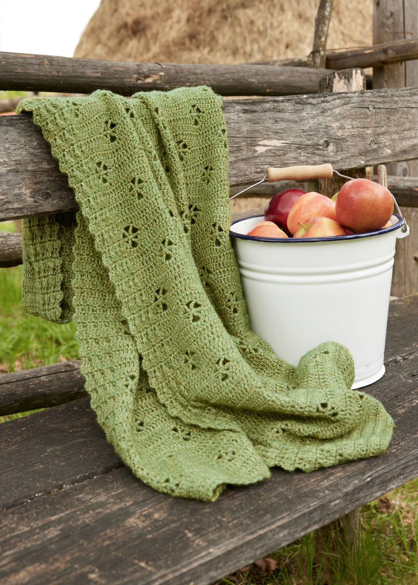 Lana Grossa Ecopuno (72% Baumwolle, 17% Schurwolle (Merino), 11% Alpaka (Baby), Lauflänge 215 m/50 g), 450 g Apfelgrün (Fb 2); 1 Häkelnadel Nr. 4.