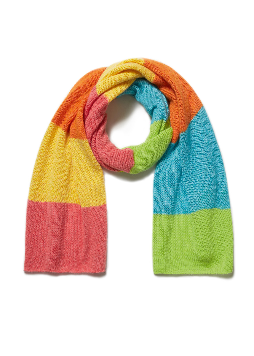 Schal 22a: 50 g Hummer (Fb. 90), 50 g Leuchtendorange (Fb. 89), 50 g Gelb (Fb. 95), 50 g Neongrün (Fb. 96) und 50 g Türkis (Fb. 28);