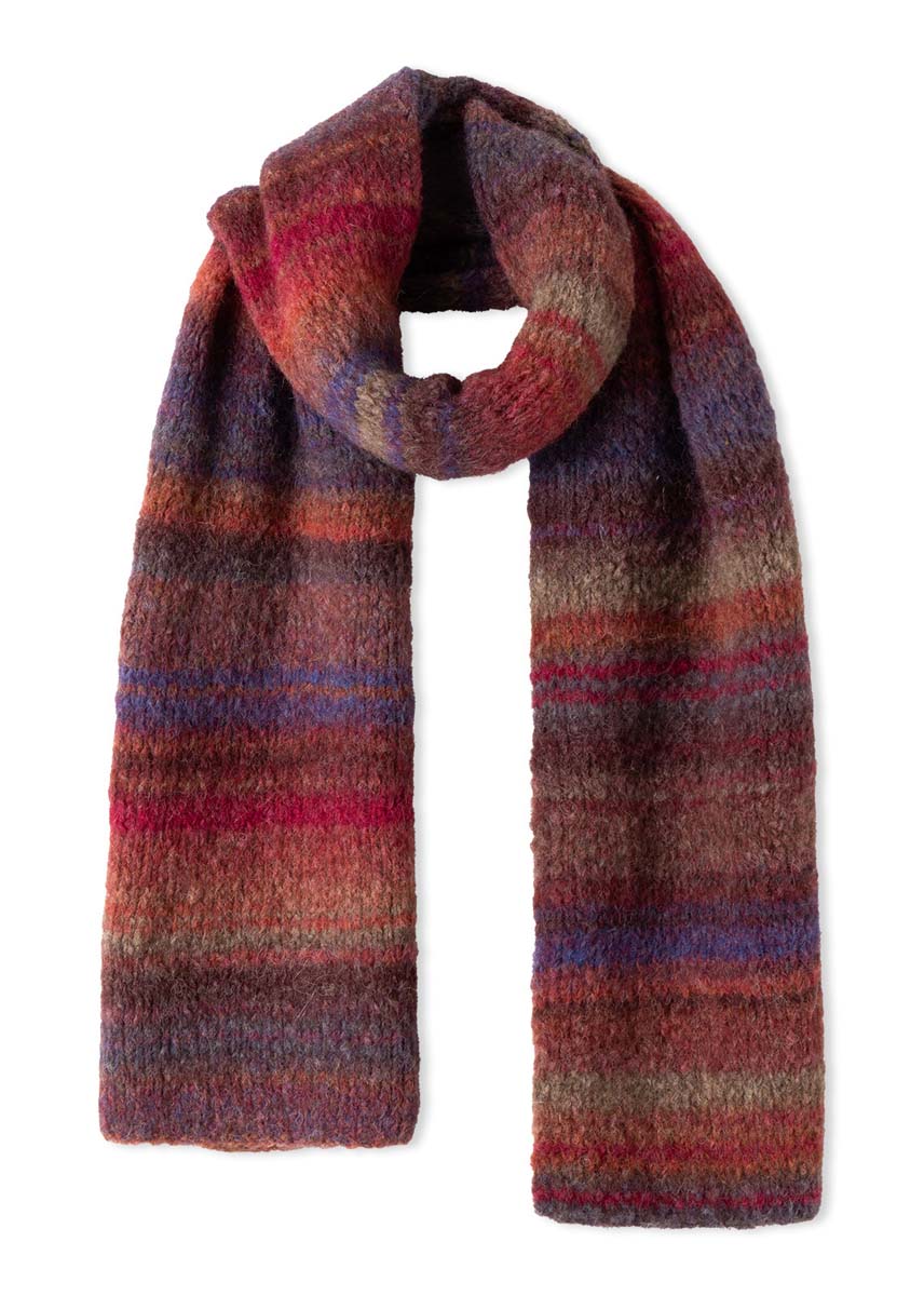 Lana Grossa Gigante Multi (70% Alpaka (fein), 30% Polyamid, Lauflänge 150 m/50 g), 250 g in Weinrot/Rotbraun/Graurot/Aubergine/ Khaki/Graubraun (Fb 103); 1 Rundstricknadel Nr 5,5, 80 cm lang.