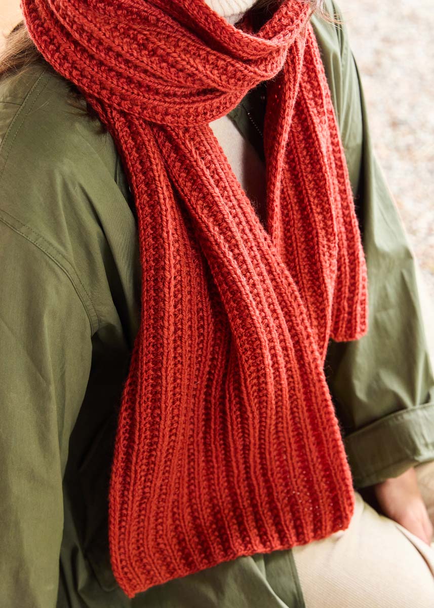 Lana Grossa-Qualität „Landlust- Naturwolle“ (100% Norwegische Schurwolle, LL ca. 85 m/50 g), 350 g in Rostrot (Fb 22) ; Stricknadeln Nr. 5.