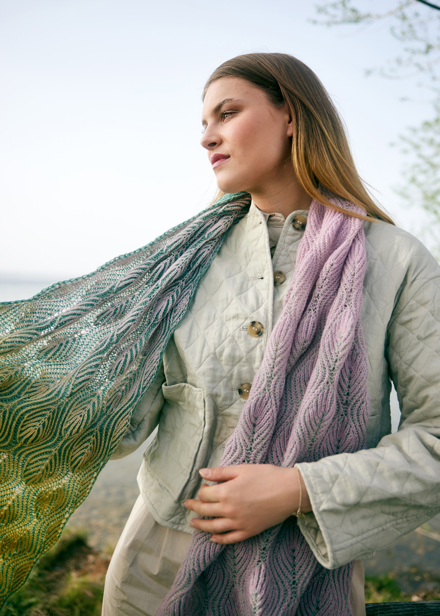 Lana Grossa Merino Lace Aquarell (100% Schurwolle (Merino extrafein), Lauflänge 800 m/100 g), 100 g Curry/Altrosa/Graugrün (Fb. 2) und Lana Grossa Cool Wool Lace (100% Schurwolle (Merino extrafein), Lauflänge 400 m/50 g), 50 g Flieder (Fb. 15) und 50 g Resedagrün (Fb. 39); 1 Rundstricknadel Nr. 3,5, 60 cm lang.
