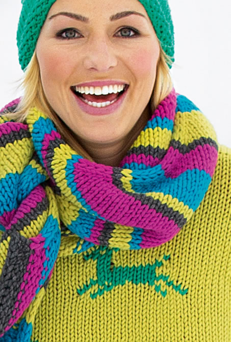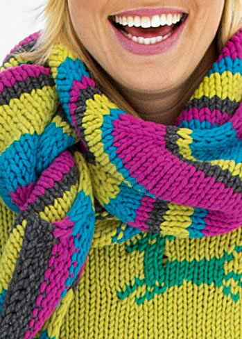 Lana Grossa „Mille II” (50% Wolle, 50% Polyacryl, LL = 55 m/50 g) je 100 g Dunkelgrau meliert (Fb 16), Pistazie (Fb 61), Türkis (Fb 62), Pink (Fb 26). Stricknadeln Nr. 7.