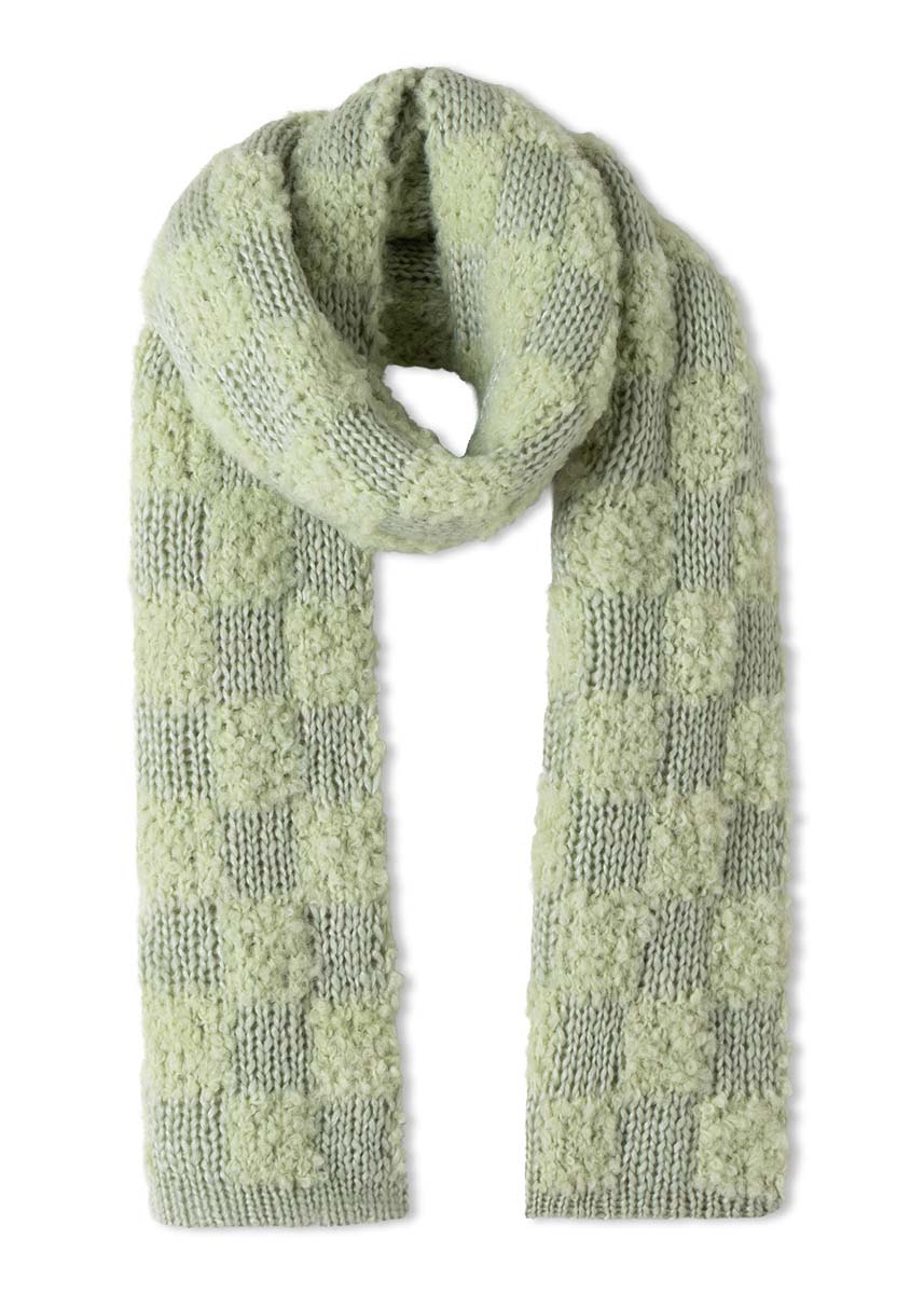 Für dieses Set werden zwei unterschiedlich strukturierte Garne im Schachbrettmuster verarbeitet. Die Jacke ist unkompliziert. Der Schal wird in Doubleface-Technik gestrickt, damit beide Seiten sauber aussehen. Das dauert, aber es lohnt sich.