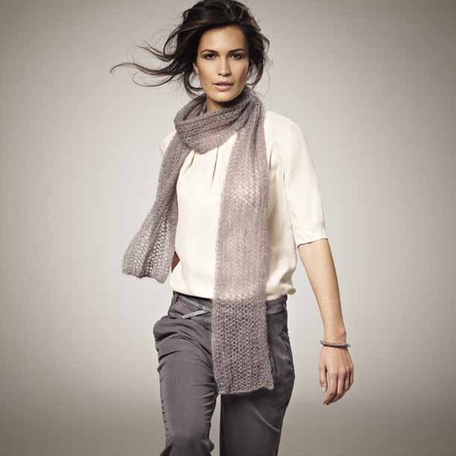 Lana Grossa-Qualität "Silkhair Lux" (62 % Mohair, 33 % Seide, 5 % Polyester, Lauflänge ca. 190 m/25 g): ca. 50 g Taupe Fb. 504; Stricknadeln Nr. 8.
