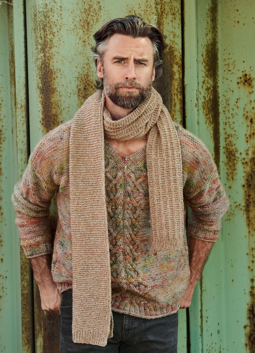 Lana Grossa Smokey (46% Schurwolle Merino, 41% Baumwolle, 8% Polyamid, 5% Yak, Lauflänge 225 m/50 g), 200 g Leinen/Beige/Sand (Fb 206); Stricknadeln Nr. 4,5