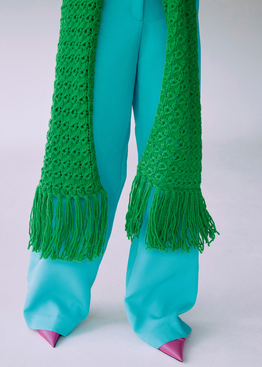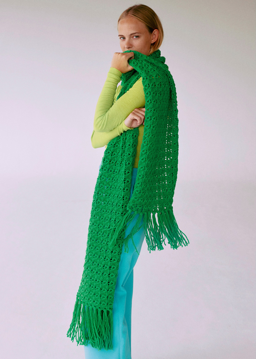 Lana Grossa-Qualität „Woohoo“ (100 % Schurwolle (Merino), LL = ca 250 m/200 g): ca 600 g Grün (Fb 10); Stricknadeln Nr 7; Häkelnadel Nr 7.