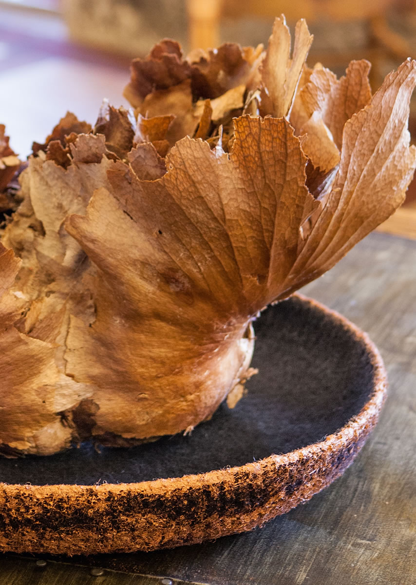 WOW! – Was wirkt, wie ein antiker Fund, wurde erst gehäkelt, dann gefilzt und hinterher mit Metallic-Farbe veredelt! (gewaschen ca. 45 cm Durchmesser, 8 cm hoch)
