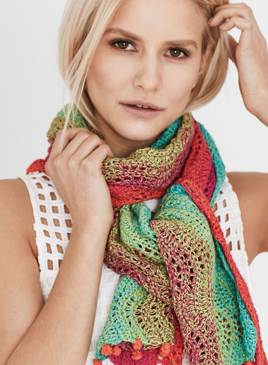 Lana Grossa Shades of Cotton, (100% Baumwolle, Lauflänge ca 800 m / 200 g), 200 g in Orange/Rot/Zyklam/Gelbgrün/Türkis (Fb 101), Häkelnadel Nr 3,5.