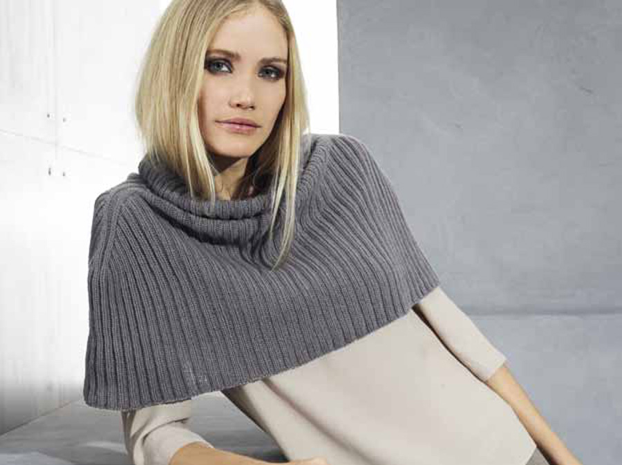 Lana Grossa-Qualität „Solocashmere 110“ (100 % Kaschmir, LL = ca. 110 m/25 g): ca. 175 (200) g Mittelgrau (Fb. 124); je 1 Rundstricknadel Nr. 3, 60 und 80 cm lang.
