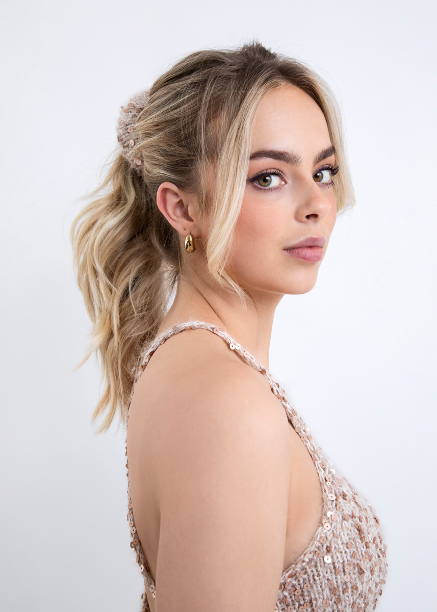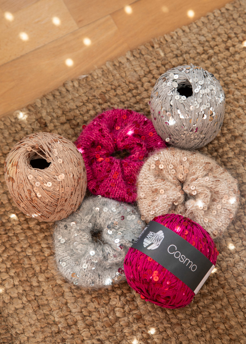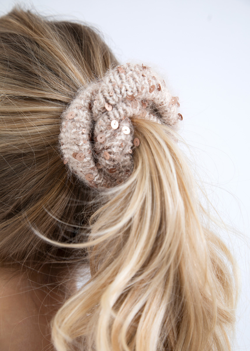 Ein kleines Strickstück mit großer Wirkung – das Scrunchie Mila setzt glänzende Akzente in jeder Frisur.