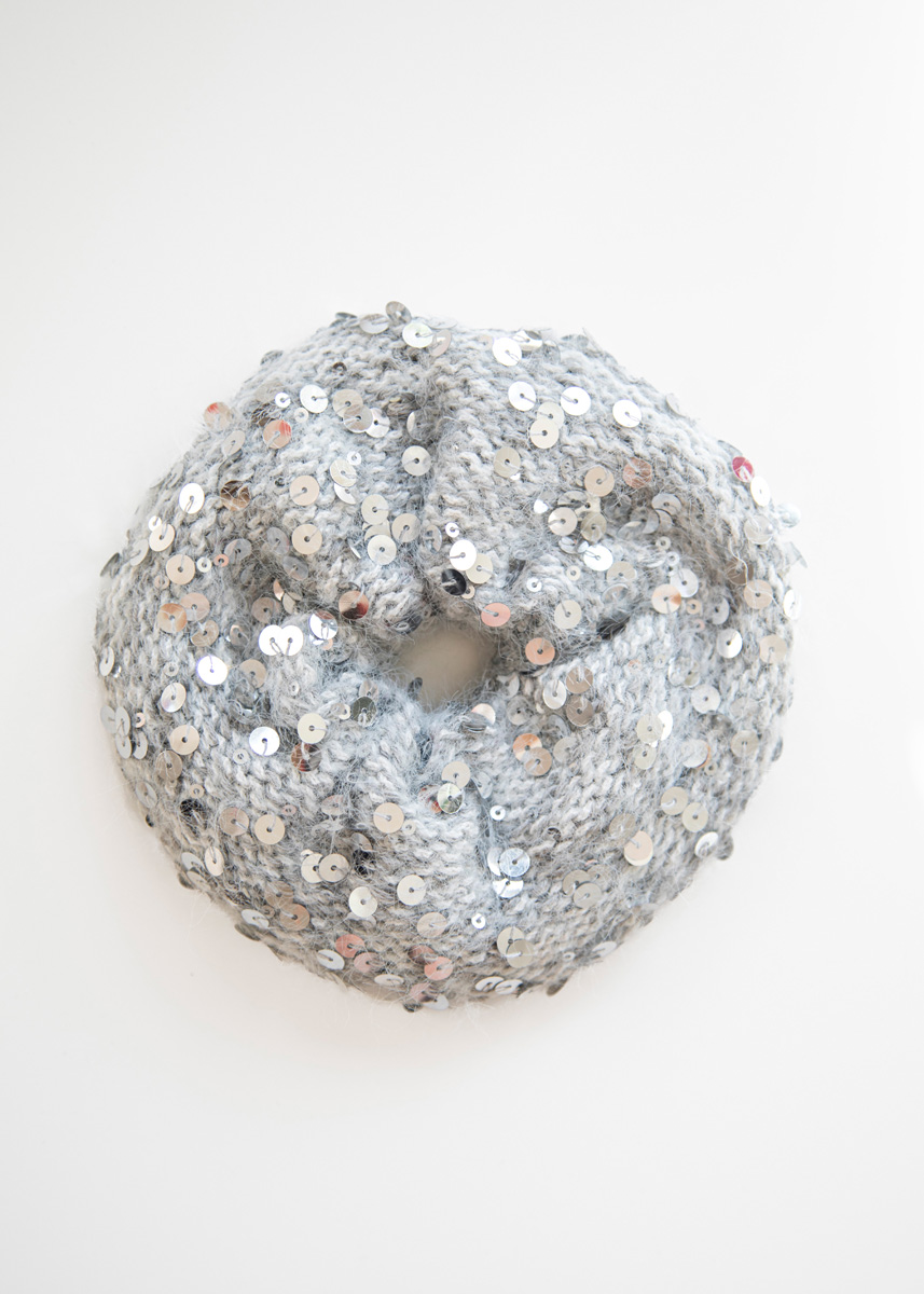 Das Besondere: Vor dem Zusammennähen kannst du selbst entscheiden, welche Seite außen liegen soll. Drehst du die Arbeit auf die Innenseite, treten die Pailletten noch stärker hervor und sorgen für einen ausdrucksvollen, glamourösen Look. So bestimmst du ganz individuell, ob dein Scrunchie dezent schimmert oder ein funkelndes Statement setzt.