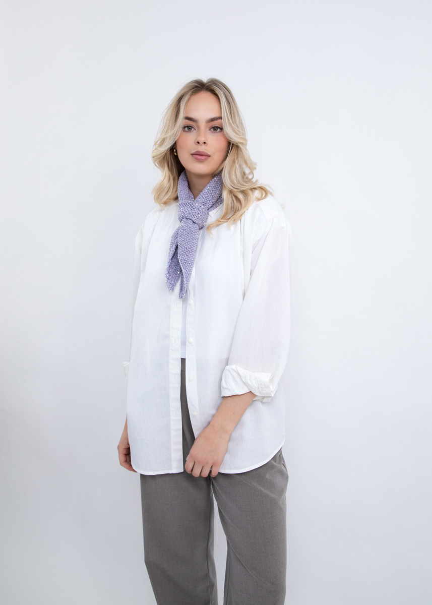 Der Shiny Scarf überzeugt mit einer eleganten Struktur und zeitlosem Design. Gestrickt aus der hochwertigen Garnkombination Ecopuno und Glamour vereint der Schal angenehme Weichheit mit einem eleganten Schimmer. Das feine Perlmuster verleiht dem Schal eine edle, lebendige Oberfläche und sorgt für einen schönen Fall. Dank der zwei verfügbaren Größen lässt sich der Shiny Scarf ganz individuell stylen – ob als zartes Accessoire oder als ausdrucksstarkes Statement-Piece.
