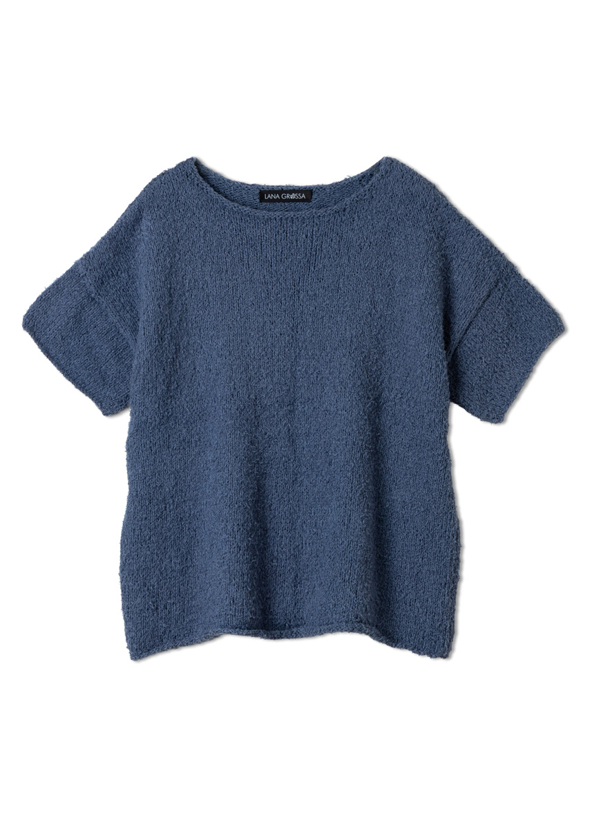 Lana Grossa Ella (100% Baumwolle, Lauflänge 130 m/50 g), 350 (350 - 400 - 400) g in Jeans (Fb 7); Stricknadeln Nr 4,5, 1 Rundstricknadel Nr 4,5, 40 cm lang