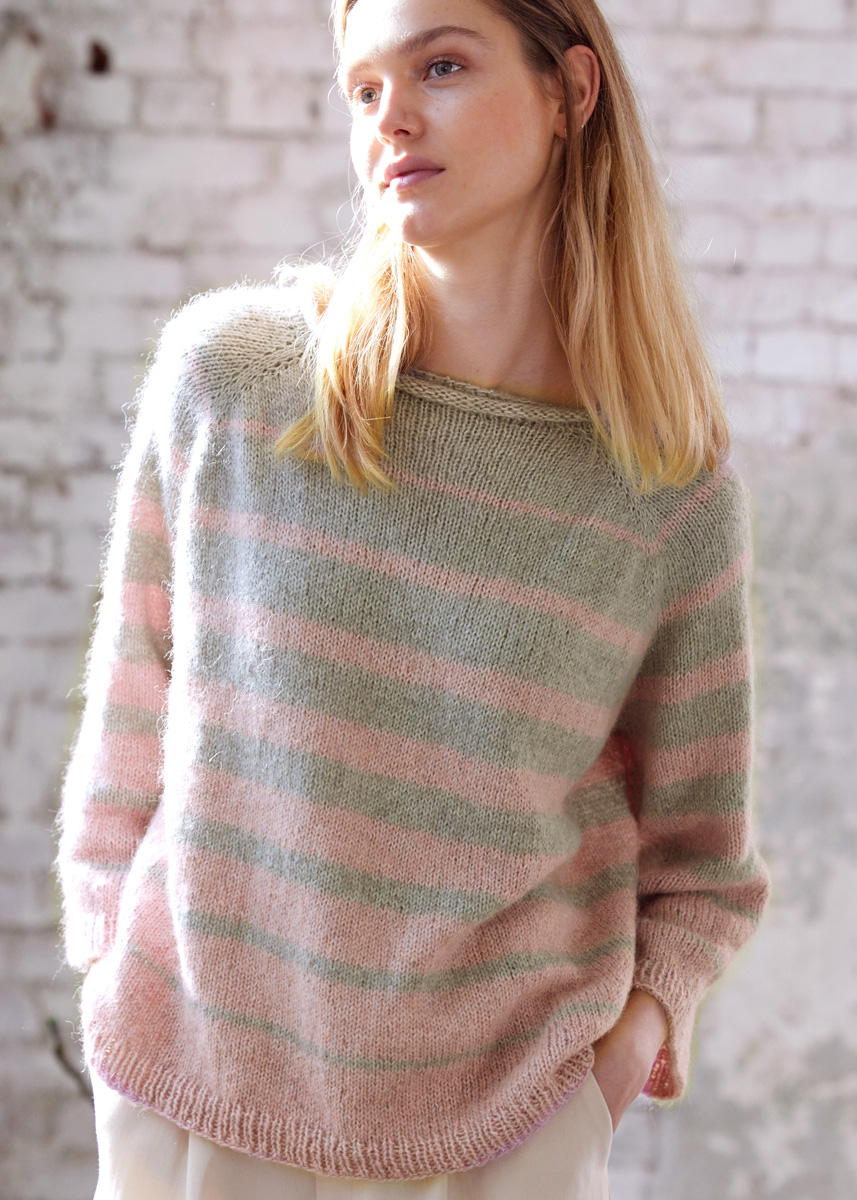 Als Tanja das Streifenshirt im Frühjahr 2021 im ARD-Buffet präsentierte, war sie erstaunt, wie gut es ankam. Nun hat sie den Publikumsliebling optimiert: Der Halsausschnitt wurde verkleinert und durch eine stabilisierende Rippenblende ergänzt. Obendrein bekam SIDNEY einen Satz Dreiviertelärmel und wird mit dem soften Garn-Mix zum Ganzjahresteil. Was bleibt, sind die frischen Ringel und die edle Top-Down-Machart.