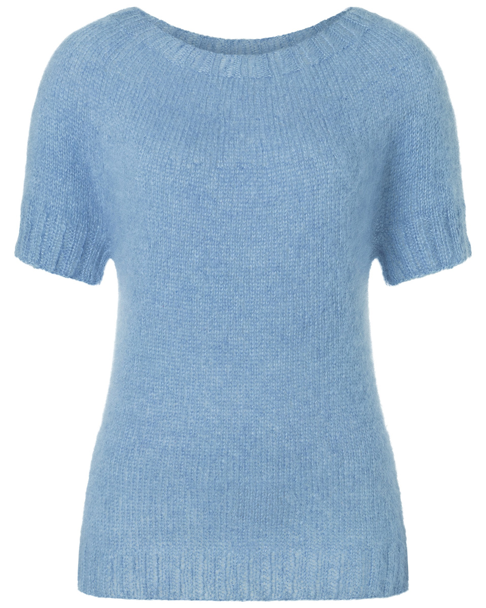 Gleiche Frau, gleiche Anleitung :-). Ja, das bin ich! Und ja, es ist auch das gleiche Shirt, wie bei dem Modell zuvor! Nur habe ich mir die Haare hochgezwirbelt und für diesen himmelblauen Traum die Silkhair gewählt – das Garn, das mich schon während der Arbeit an meiner Mohair Edition so überzeugt hat.