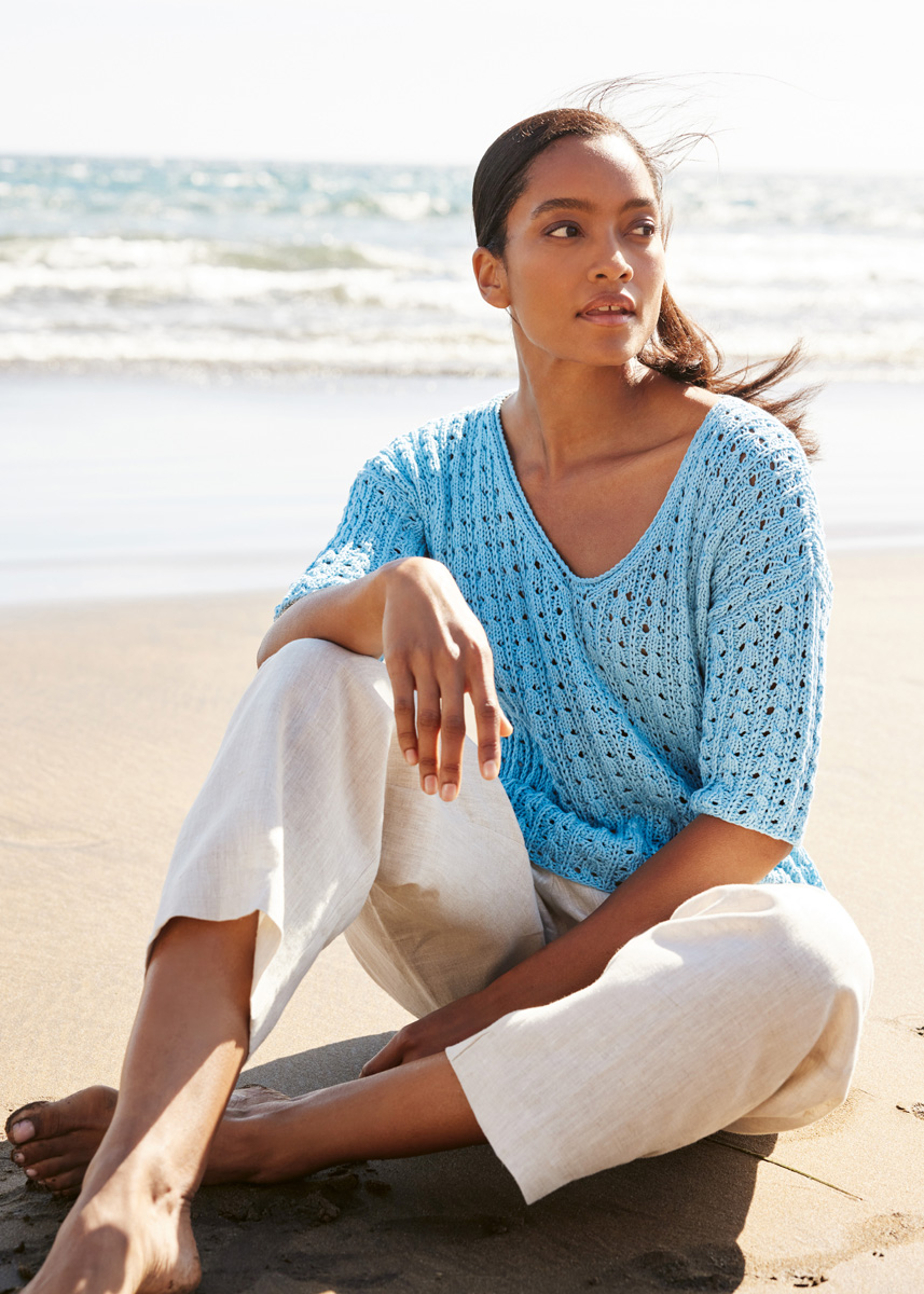 Frutti di Mare – Strandläuferinnen lieben das locker sitzende SHIRT, dessen plastisches Lochmuster an Muscheln erinnert, und freuen sich über etwas Wärme nach einem Tag am Meer.
