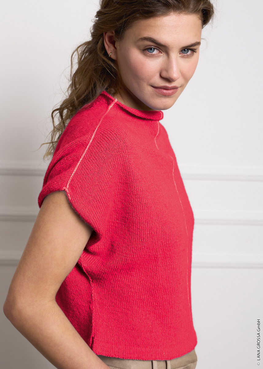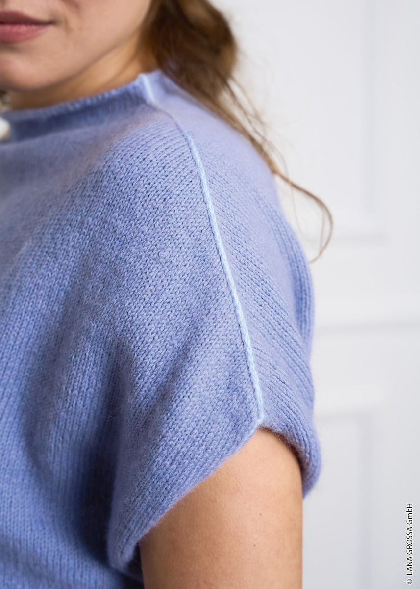 Das SIMPLE TEE-SHIRT ist ein schlichtes, luftiges Shirt mit leicht überschnittenen Ärmeln, kleinem Turtle-Neck-Kragen und dekorativen Ziernähten an Vorder- und Rückenteil, Schultern und Ärmeln – perfekt kombinierbar für Frühling und Sommer. Das Shirt wird nahtlos top-down von oben nach unten ...