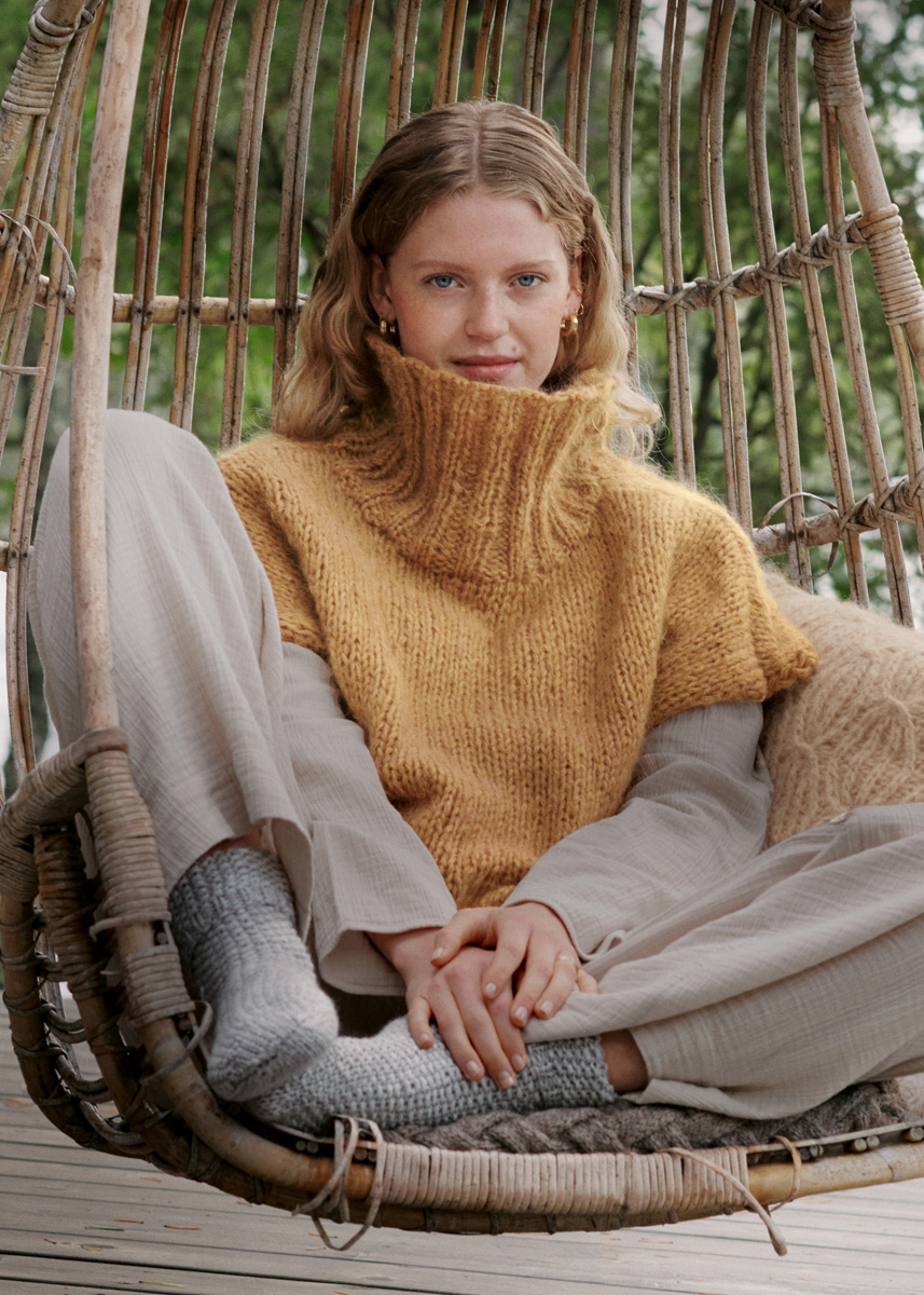 Mit Rippen, Zöpfen und Noppen verpasst unsere kuschlige Strickhülle faden Wärmflaschen (2 Liter) zeitlosen Chic. Die passenden Perlmustersocken ergänzen das Ganze zum Lounge-Set.