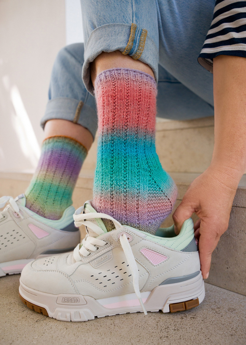Unikat-Charakter: Bei diesem einzigartigen Farbeffekt wiederholt sich die Aneinanderreihung der Farben nicht. So erscheinen beide Socken in einer einmaligen Färbung.