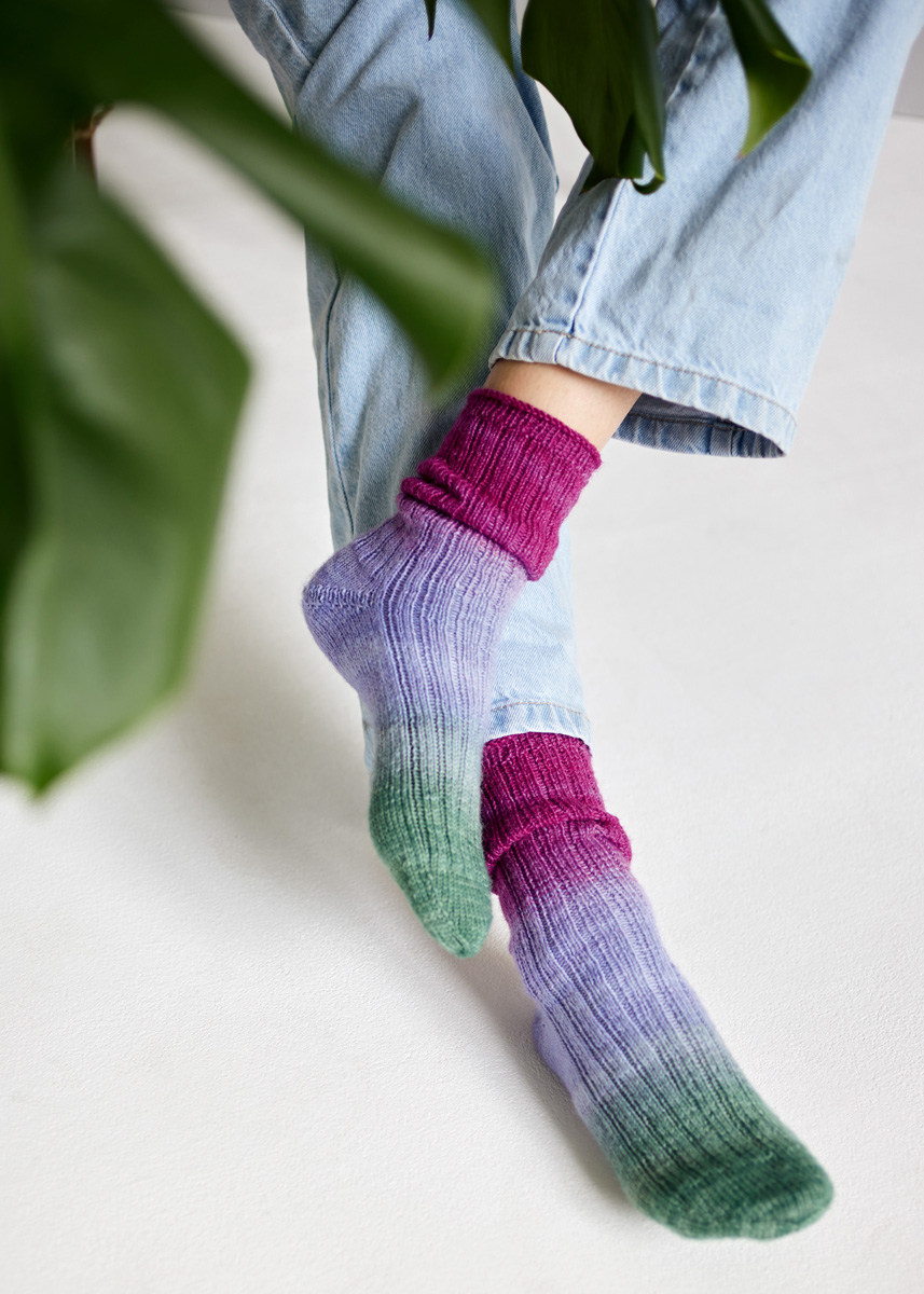 HANDGEFÄRBTE GARNE kreieren interessante, facettenreiche Effekte. Obendrein sind unsere Qualitäten limitiert, was jedem Strickteil einen EXKLUSIVEN CHARAKTER verleiht. Weil hand-dyed-Garne generell etwas unterschiedlich ausfallen, waren perfekte Socken- Zwillinge bisher nicht machbar. Abhilfe ...