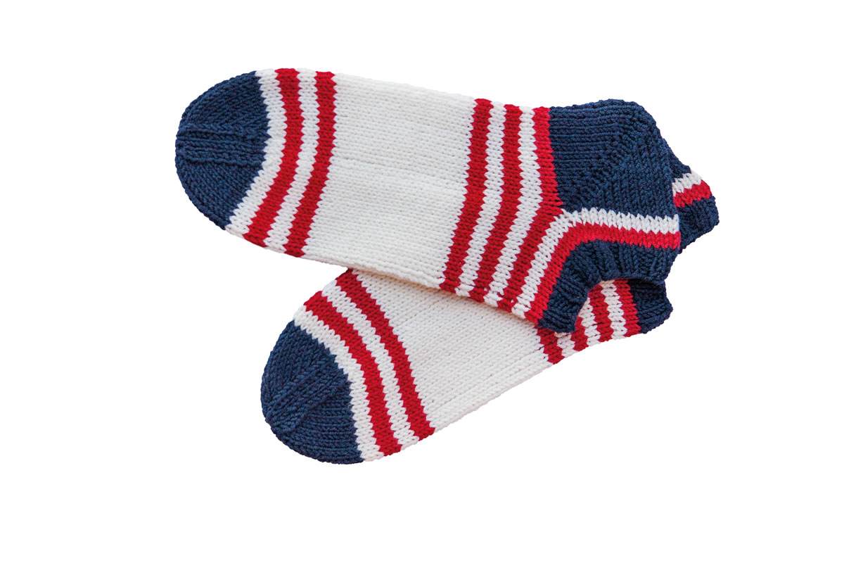 „Schuhe aus“ – lautet die Maxime auf jeder schicken Yacht. Die Lösung? Diese stilvollen Söckchen, an denen wir nicht lange stricken müssen. (für Schuhgröße 38-40)