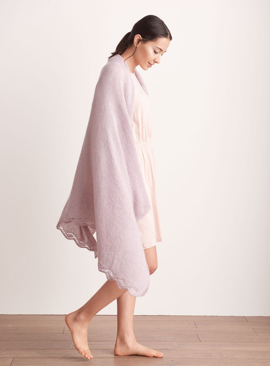 Lana Grossa Ecopuno (75 % Baumwolle, 15 % Schurwolle, 10 % Alpaka, Lauflänge 225 m/50 g) 350 g Flieder (Fb 8); Stricknadeln Nr. 5.