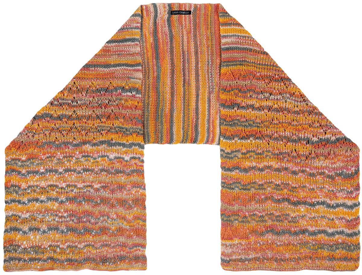 Lana Grossa Gomitolo Doppio (42 % Baumwolle, 58 % Viskose, Lauflänge 380 m/100 g), 400 g Natur/Beige/ Rosenholz/Gelb/Orange/Kürbis/Grau (Fb 253); Stricknadeln Nr. 3,5.