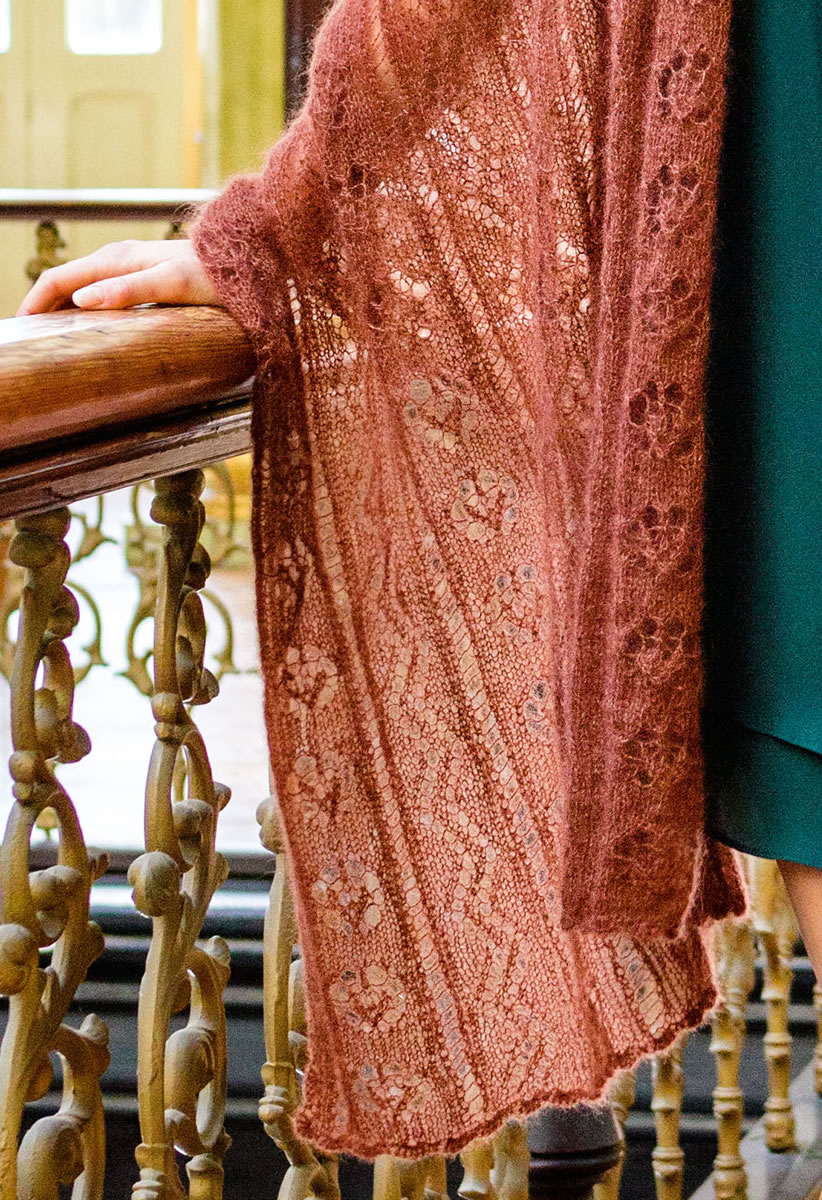 Lana Grossa-Qualität „Silkhair” (70 % Mohair (Superkid), 30 % Seide, LL = ca. 210 m/25 g): ca. 225 g Rotbraun (Fb. 77); 1 Rundstricknadel Nr. 4, 100 cm lang, 1 Wollhäkelnadel Nr. 3.