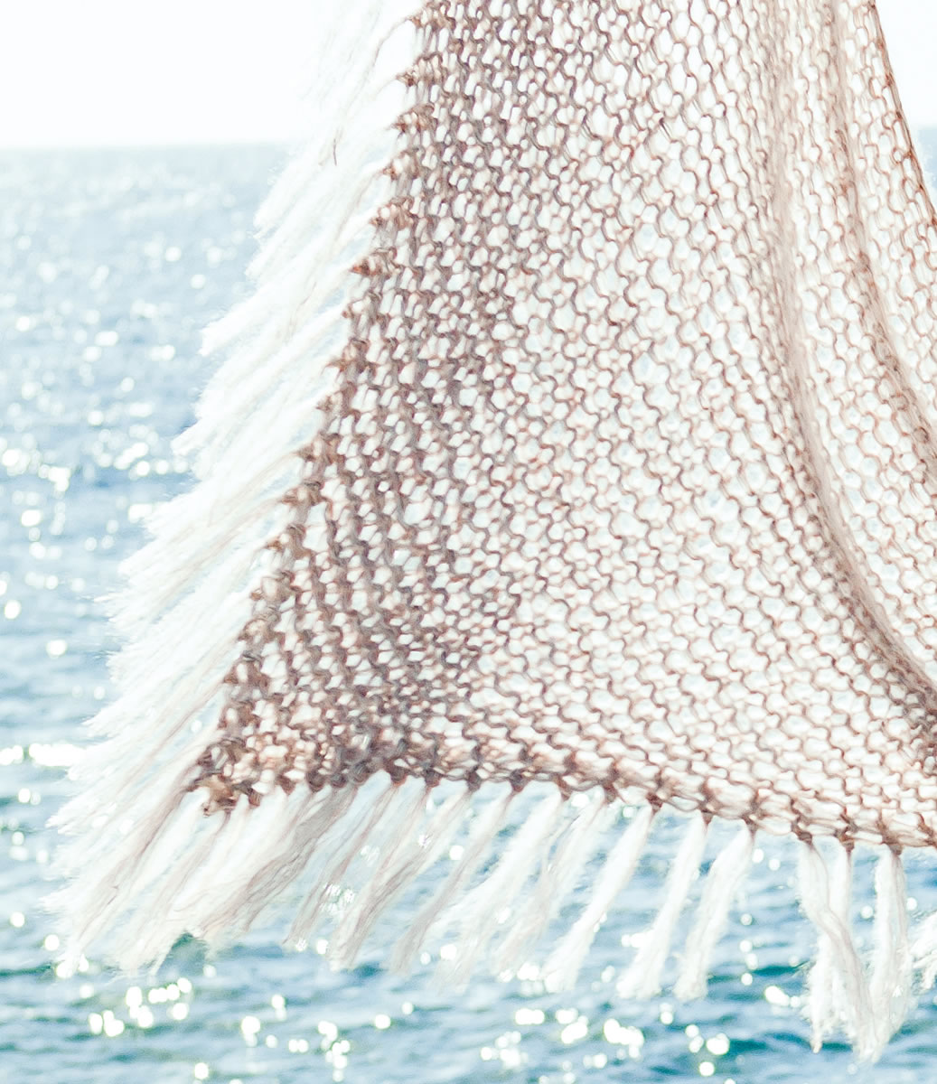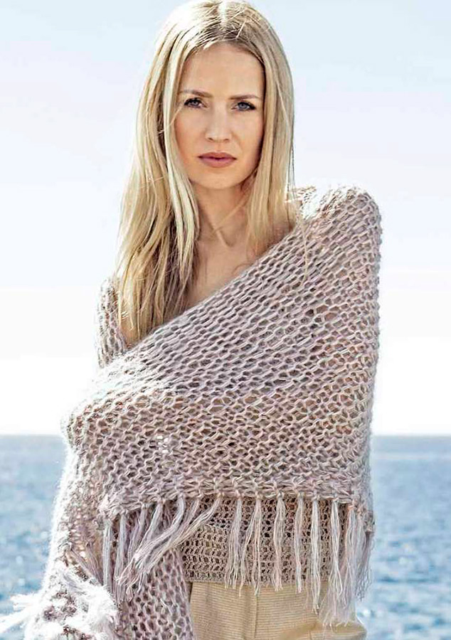 70% Mohair Superkid, 30% Seide, LL = 210 m/25 g) je 50 g Silbergrau (Fb 41), Hellblau (Fb 42) und Lachs (Fb 34), "Lace Lux" ( 33% Schurwolle Merino, 67% Viskose, LL = 310 m/50 g) je 50 g Silbergrau meliert (Fb 22), Natur meliert (Fb 24) und Rosenholz meliert (Fb 25). Stricknadeln Nr. 15.