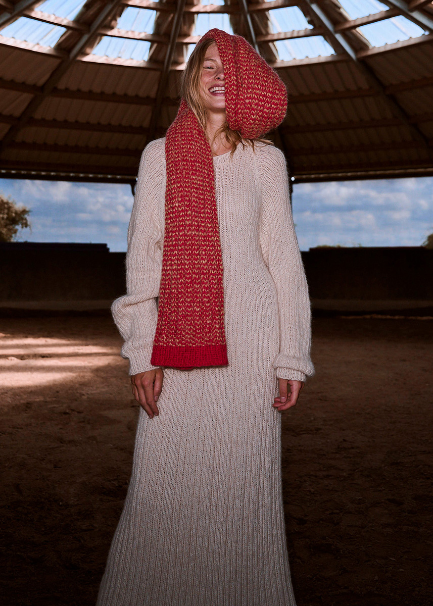 Von oben bis unten von wohliger Wolle eingehüllt. Das Strickkleid in Maxi- Länge schafft eine schöne Silhouette.
