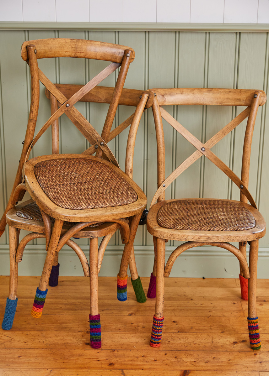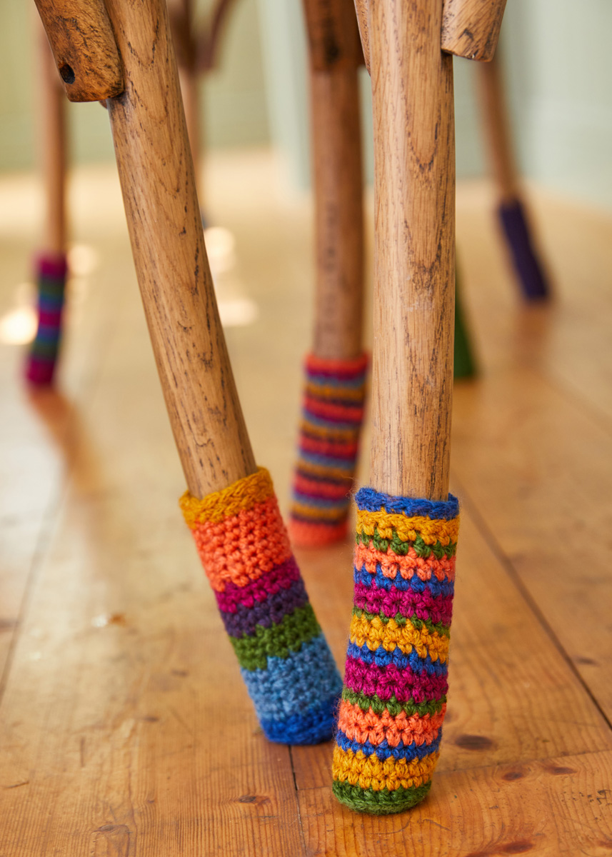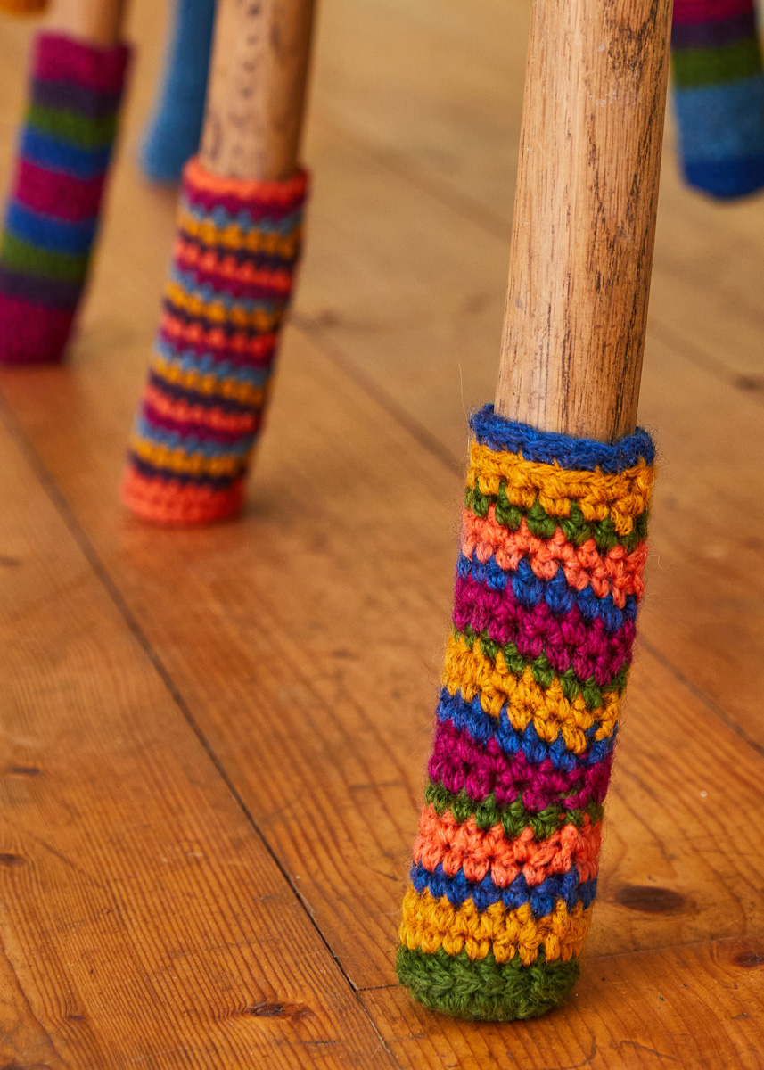 Lana Grossa-Qualität „Landlust Merino 120“ (94% Schurwolle Merino, 6% Polyamid (Trägerfaden), LL ca. 120 m/50 g), je 50 g in Bernstein (Fb 139), Koralle (Fb 130), Fuchsia (Fb 121), Aubergine (Fb 142), Petrolblau (Fb 144), Blau (Fb 145) und Grün (Fb 117); 1 Häkelnadel Nr. 4,5.