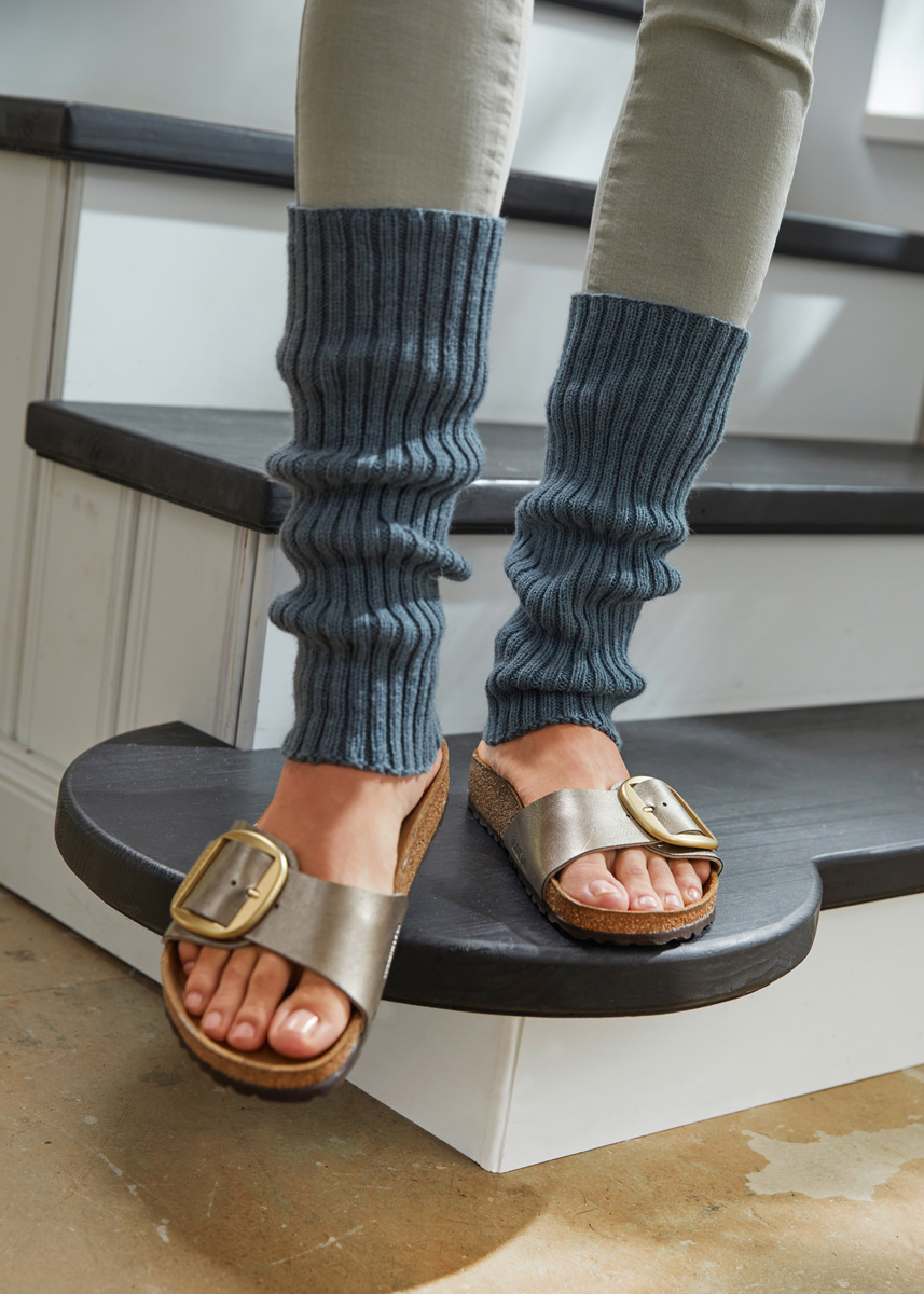 Lana Grossa „Meilenweit 100g Merino Extrafine“ (80 % Schurwolle (Merino extrafine), 20 % Polyamid, Lauflänge = 420 m / 100 g): 100 g Blaugrau (Fb 2431); Nadelspiel Nr. 2,5