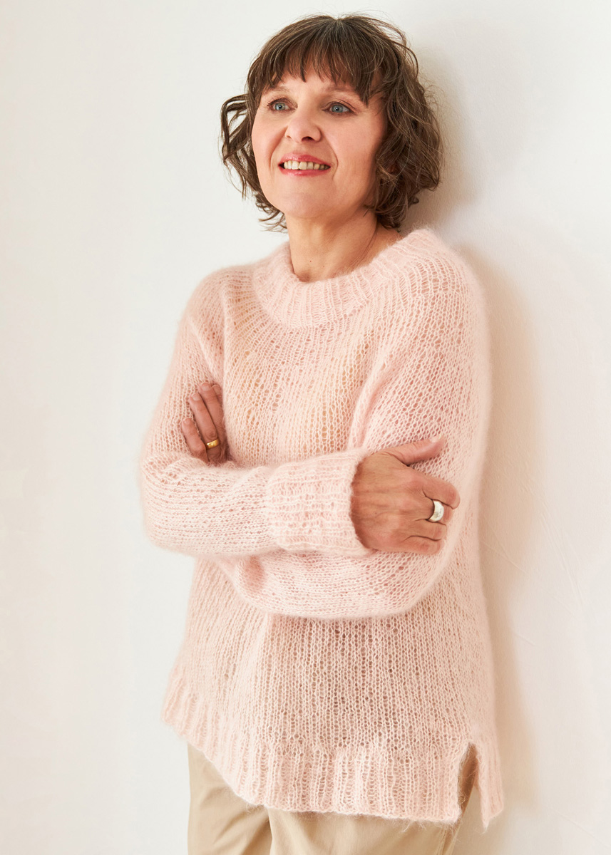 Zart, flauschig und (natürlich!) in einem Rutsch von oben nach unten gestrickt: In der Mohair Edition präsentieren sich meine Sweater nun auch als edle Leichtgewichte. Zweifädig verstrickt, gleichen sie einem Hauch von Nichts und punkten mit maximalem Tragekomfort. Das wohlige Gefühl von Geborgenheit gibt es als Geschenk dazu.