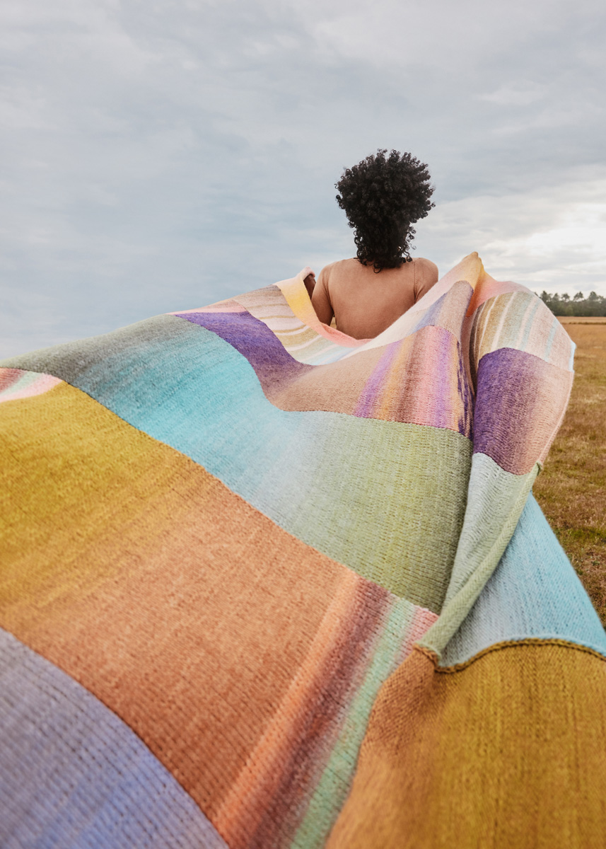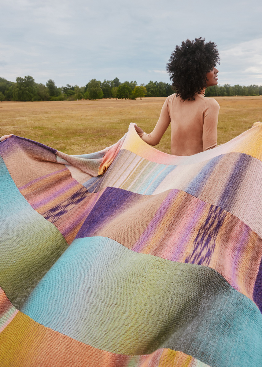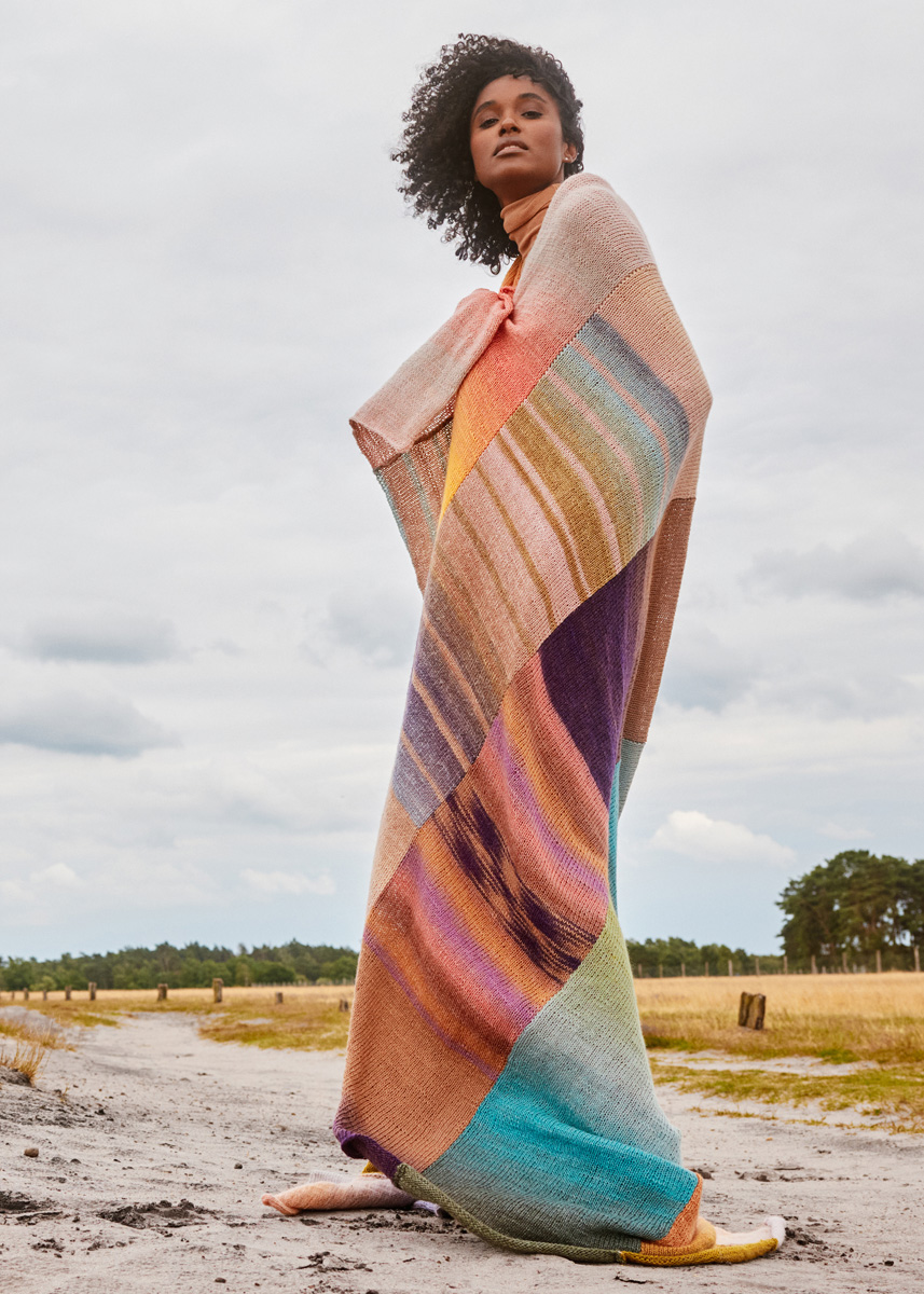 Lana Grossa-Qualität „Gomitolo Dipinto“ (60 % Schurwolle, 40 % Polyacryl, LL = ca 700 m/200 g): je 1 Knäuel = ca 200 g Mint/Helloliv/Nougat/Rosa/Hellbraun (Fb 2012), Khakibraun/Aubergine/Altrosa/Antik-/Grauviolett (Fb 2016), „Gomitolo Arte“ (60 % Schurwolle, 40 % Polyacryl, LL = ca 700 m/200 g): je 1 Knäuel = ca 200 g Aubergine/Graublau/ Olivbraun/Beige/Mint/Zartgrau (Fb 1018) und „ Gomitolo Versione“ (60 % Schurwolle, 40 % Polyacryl, LL = ca 700 m/200 g): je 1 Knäuel = ca 200 g Rosa/Graubeige/Veilchenblau/ Pastellgelb (Fb 439), Rosa/Lachs/Gelb/Pfirsich/Zartgrau (Fb 440), Mint/Graublau/Lind-/Moos-/Graugrün (Fb 442); Stricknadel Nr 4.