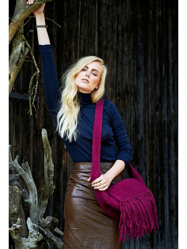 Lana Grossa Qualität „Feltro“ (100 % Schurwolle, LL = 50 m/50 g), 800 g Zyklam (Fb. 62), Nadeln Nr. 8; Häkelnadel Nr. 10