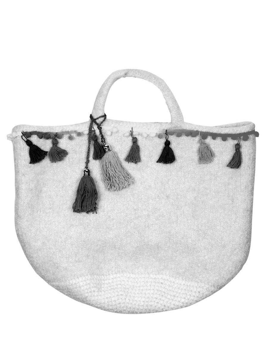 Hier haben wir ihn wieder, den LIEBLING DES TEAMS. „Oooooh, die Tasche mit den Troddeln will ich auch“ ist an der Tagesordnung. Dann mal los, Mädels, glatt rechts stricken könnt ihr ja hoffentlich alle und Quasten wickeln lernt man schon in der Grundschule. Auf geht´s!