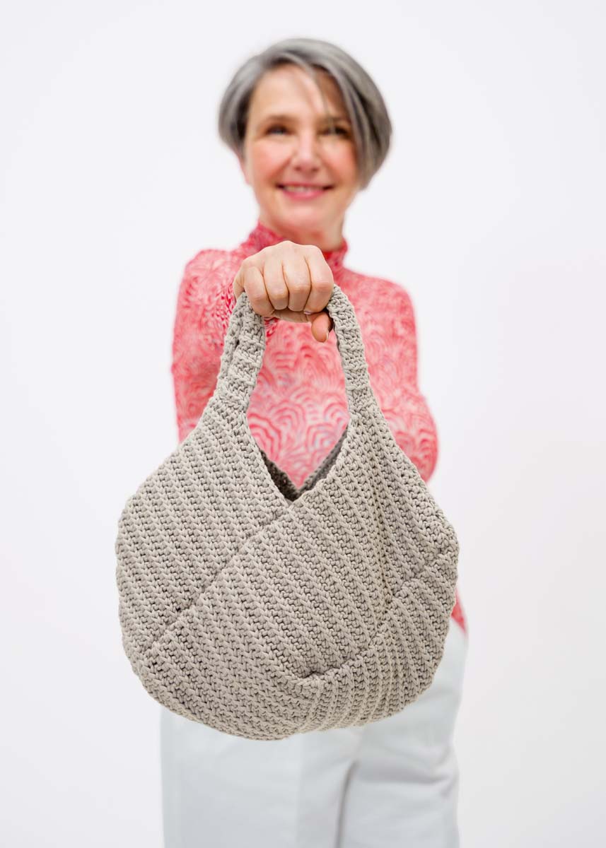 Lana Grossa The Tube Fine (68% Baumwolle, 32% Polyamid, Lauflänge 140 m/100 g), 300 g Graubeige (Fb. 115); 1 Häkelnadel Nr. 5.