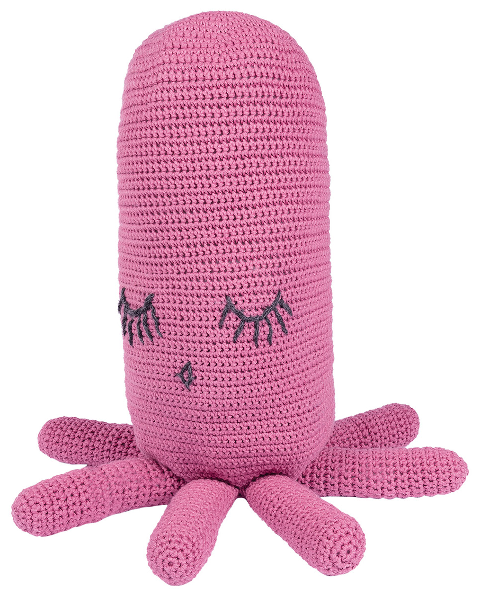 Lana Grossa Organico (100% Bio Baumwolle, Lauflänge 90 m/50 g), 300 g Erika (Fb 127) und ein Rest Dunkelgrau, 1 Häkelnadel Nr. 3,5, 1 Wollsticknadel, von PRYM 350 g Füllwatte Art. 968 210.